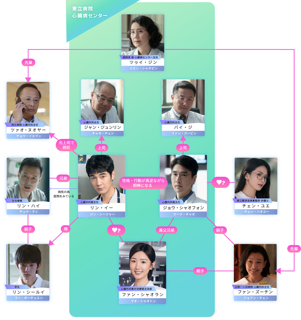 ジョウ・シャオフォンは心臓病センターの医師らと夕食を共にし、会食の終わり、ファン・シャオランは酔ったふりをしてジョウを自宅へ連れ帰り、母親であるファン・ズーチンに会わせる機会を作ったが、ジョウが母親に捨てられたことへの心のわだかまりが解けず、母子はけんか別れとなってしまった。一方、リン・イーは師匠のツァオ・ヌオヤーが脳卒中で入院したと聞き、急いで病院を訪れた。ツァオは自分が回復して手術を行うのは難しいかもしれないと述べ、リン・イーに大動脈弁狭窄を患う患者・イエン・ホゥイの手術を代わりに行うよう依頼した。しかし、イエンは病室が貧乏くさい感じに腹を立て、さらに執刀医のリン・イーが自ら挨拶に来ないことに不満を抱いていた。この時、リン・イーは手術中だったが、各病院の上層部や先輩たちから次から次へと電話がかかってきて、イエン・ホゥイの面倒をしっかりと見るよう念押しされる。第9話 VIP待遇患者による傲慢